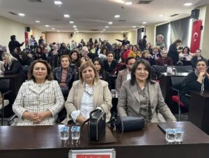Av. Rukiye Alpay Çinkılıç, panelin moderatörlüğünü üstlenerek, katılımcıların sorularını yönlendirdi ve kadın hakları ile ilgili hukuki perspektifler sundu.